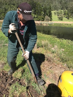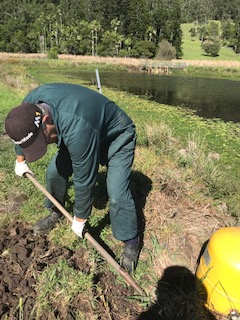 Sunday- Completed trench for electrical cable to dam for water pump. Used shovel and crowbar for 4 hours. Levelled area for cement slab for pump, 1 hour.